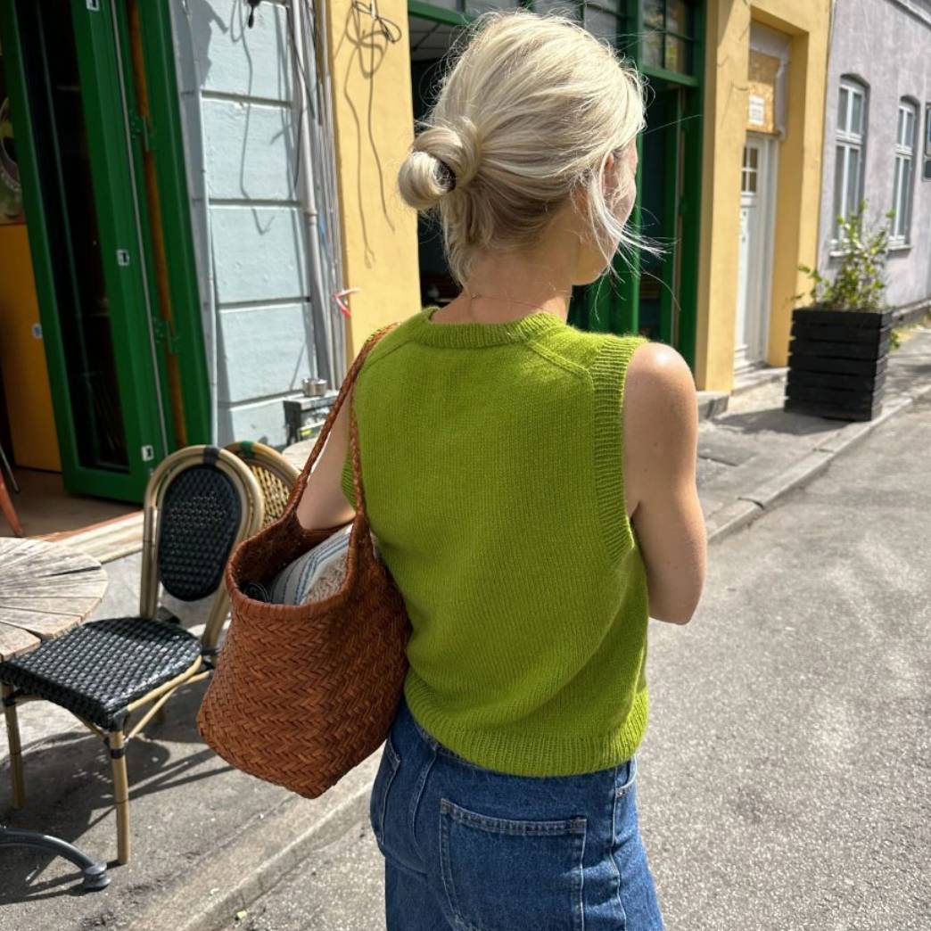 Die Maggi Vest von PetiteKnit begeistert mit hochwertigem Material, einem zeitlosen Schnitt und vielseitigen Tragemöglichkeiten – ideal für den Winter als Layering-Piece oder solo. Die Weste wird von oben nach unten gestrickt: Zunächst formt man die Rückseite mit Zunahmen, dann werden Maschen an den Schultern und Vorderteilen aufgenommen und in Reihen mit Zu- und Abnahmen gearbeitet. Unter den Armausschnitten werden die Teile verbunden, und der Körper wird in Reihen nach unten gestrickt. Rippenbündchen zieren die Armausschnitte, und abschließend werden Blenden mit Knopflöchern an den Vorderkanten und am Halsausschnitt gestrickt.