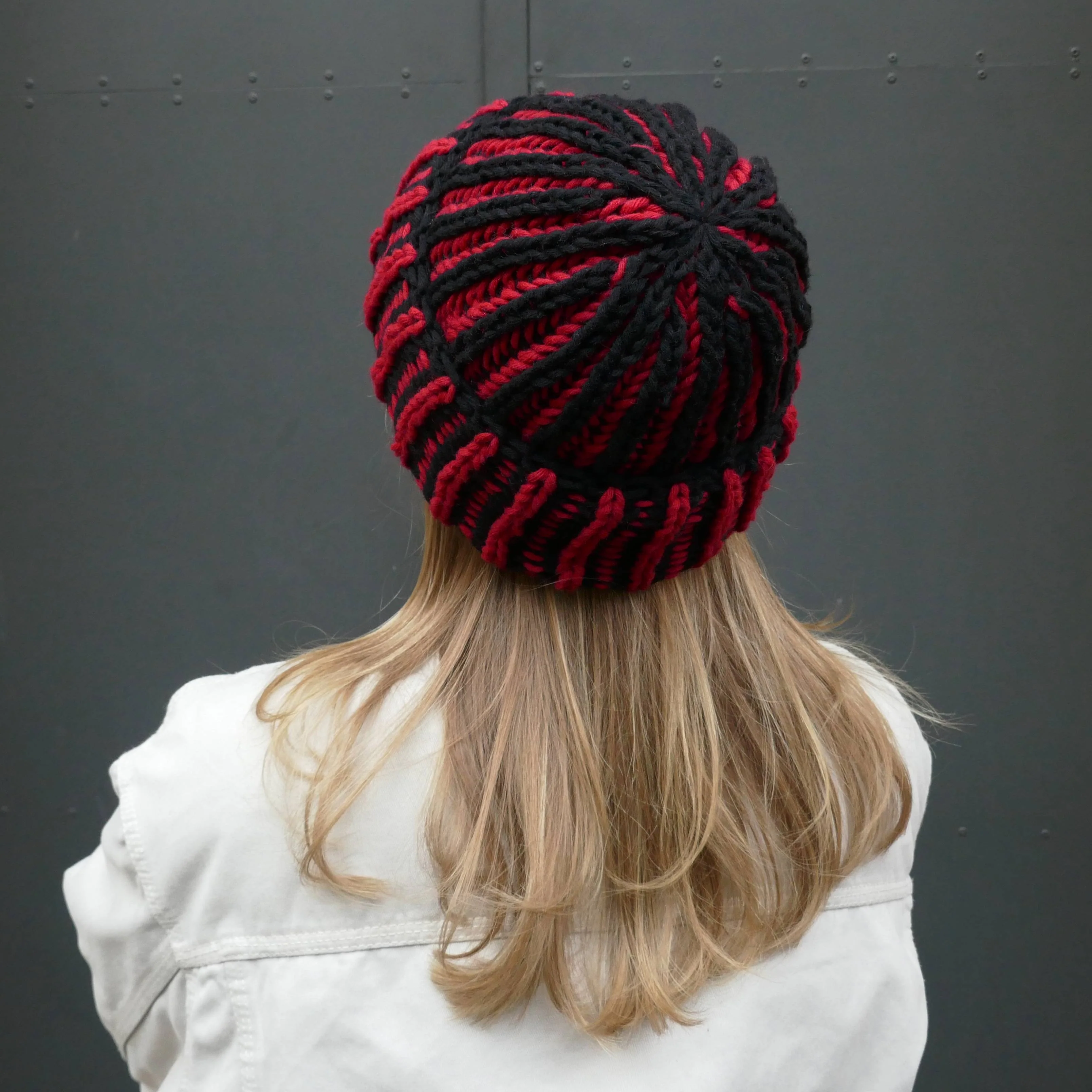 Der Huge Hat ist ein Design der Nachwuchs Strickdesignerin Nanneknitwear aus unserer WOOHOO Wolle. Diese chunky Mütze sitzt locker und leicht auf dem Kopf, hält dabei aber dank der zweifarbigen Patentmuster-Technik besonders warm – und das Beste? Sie ist wendbar! So kannst du je nach Stimmung oder Outfit die Seite wählen, die dir besser gefällt.
